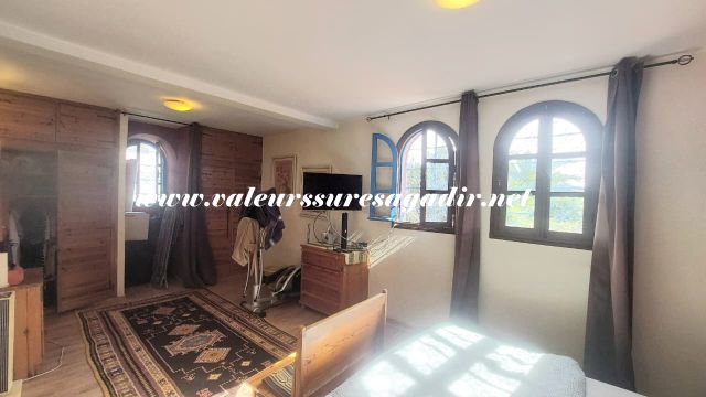 House located in the Charaf area, near the town center, comprising on the ground floor: a hallway, bathroom (sink, toilet), living room, dining room, kitchen with a door opening onto the courtyard and a built-in cupboard, and one bedroom. First floor: hallway with a built-in cupboard, bathroom (shower, sink, toilet), two bedrooms with built-in cupboards, a front terrace, and a garden of approximately 200m² with fruit trees. (Available January 1, 2026).