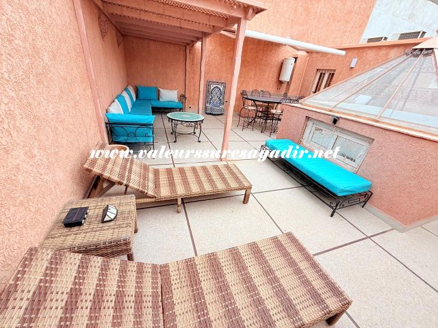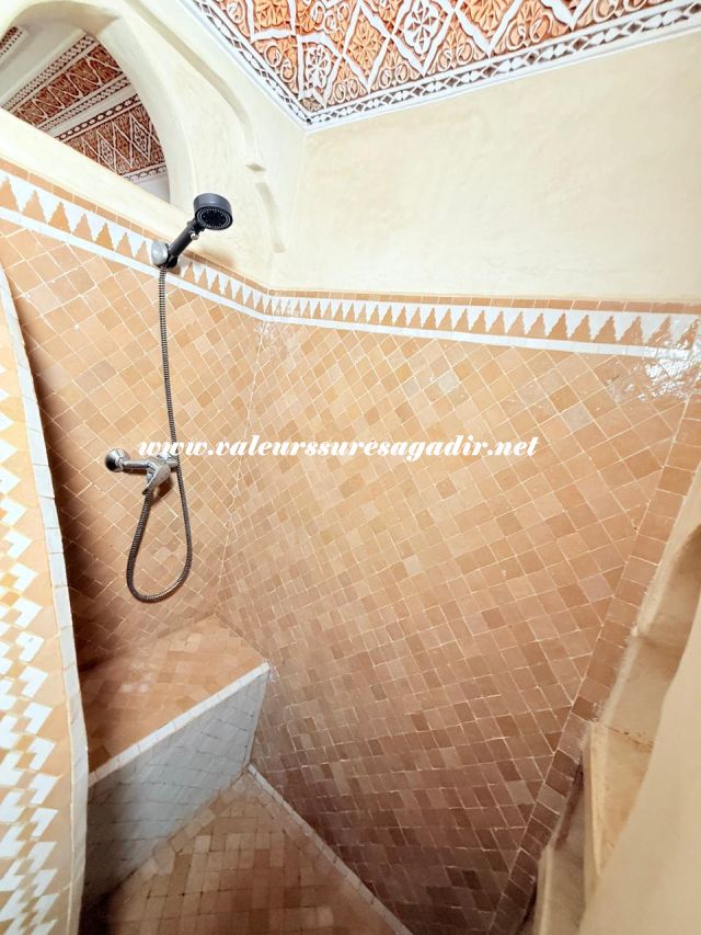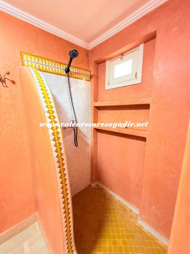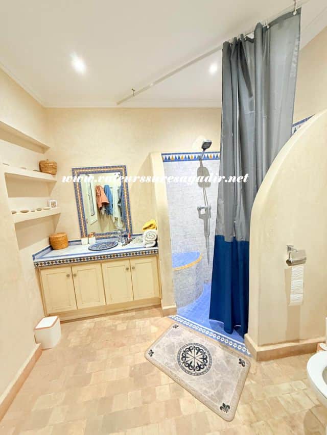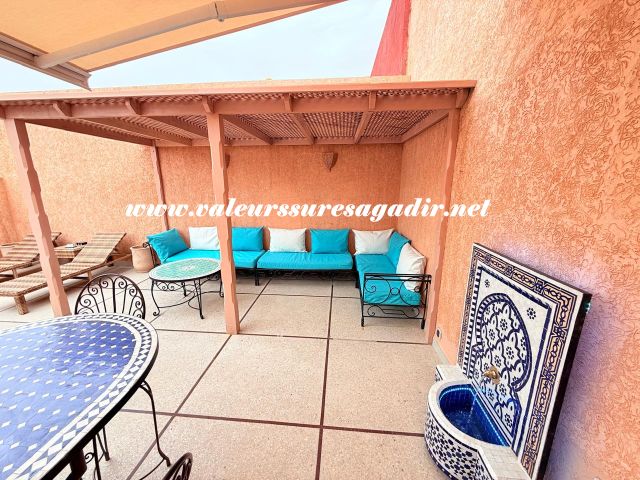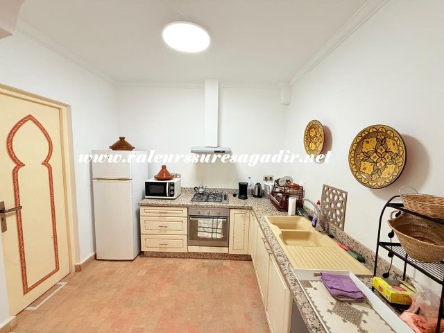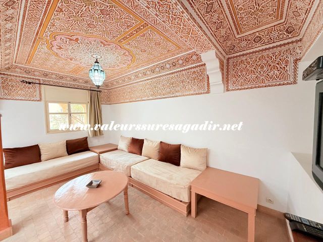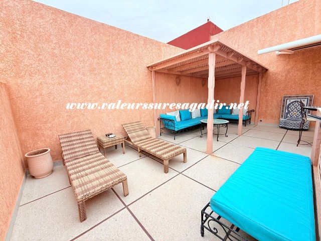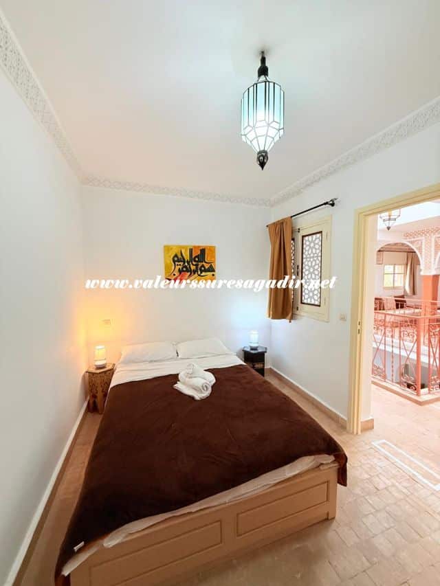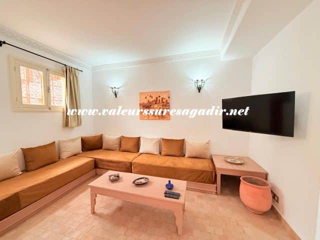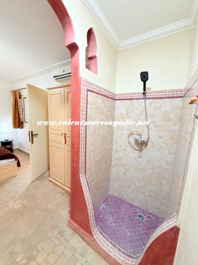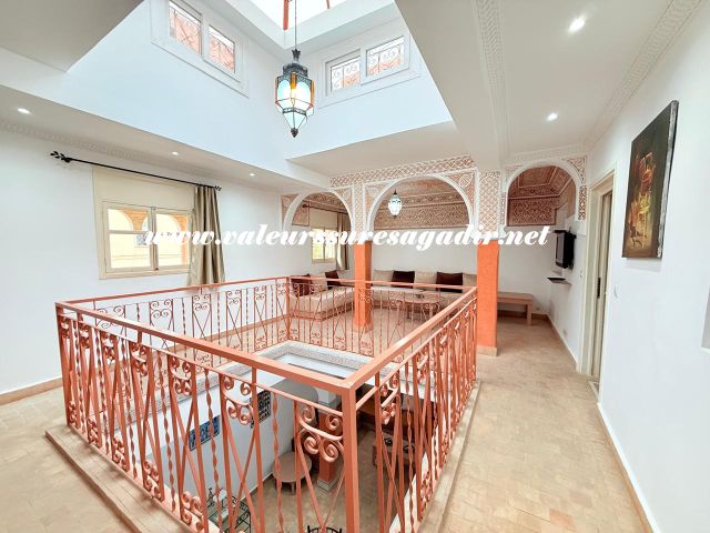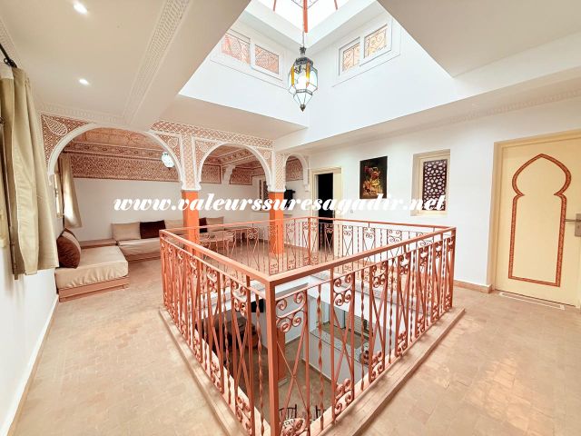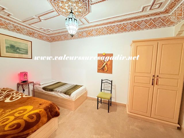 Located just 15 minutes from the beach, this charming furnished riad of approximately 150 m² offers comfort and authenticity in a pleasant setting. It features a large, bright living room and dining room with an open kitchen. The riad has four spacious suites with private bathrooms: 4 master suites, including 2 on the ground floor. Finally,