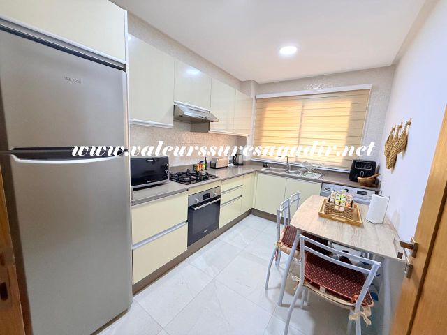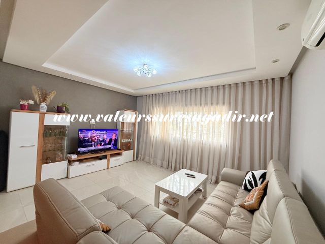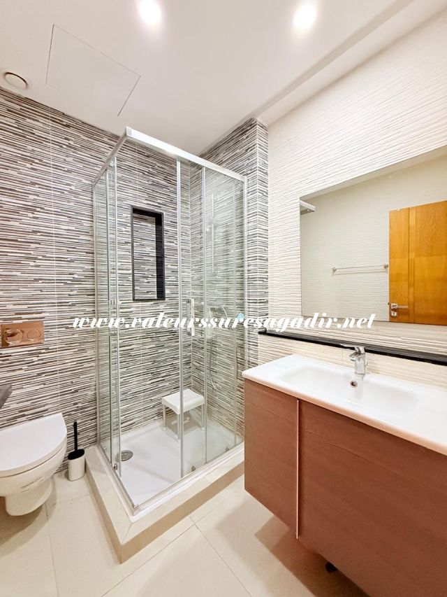 An apartment located on Qadi Yiad Avenue, with a surface area of ​​79m², it comprises an entrance hall, living room with air conditioning, equipped kitchen, bathroom with shower, sink, toilet, two bedrooms, one of which is a master bedroom with a dressing room and bathroom with shower, sink, toilet, balcony, and underground parking.