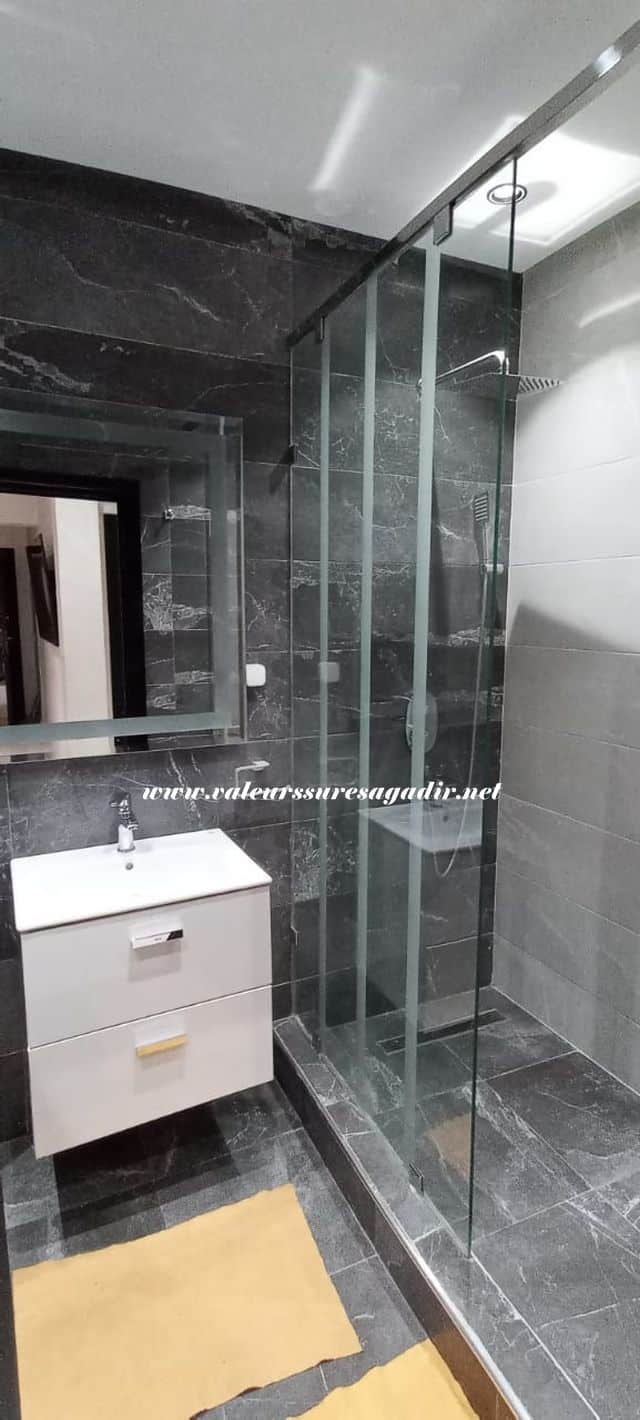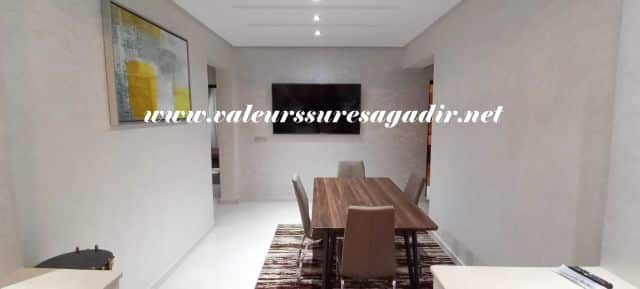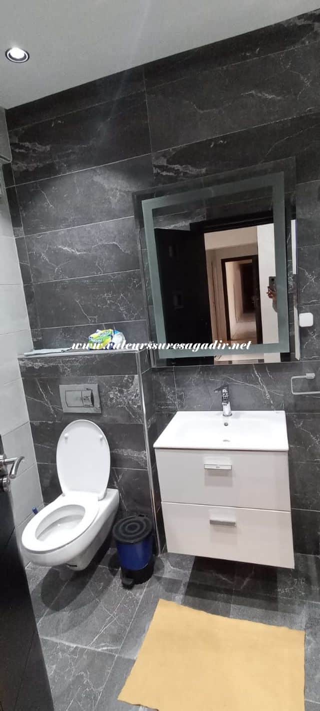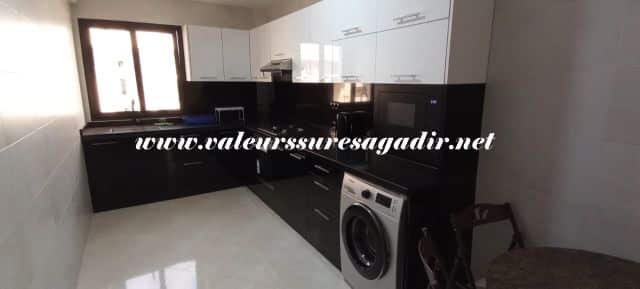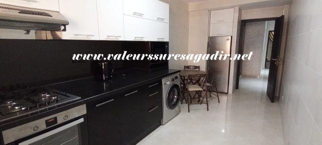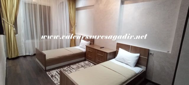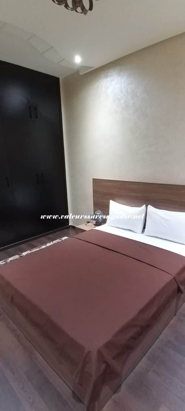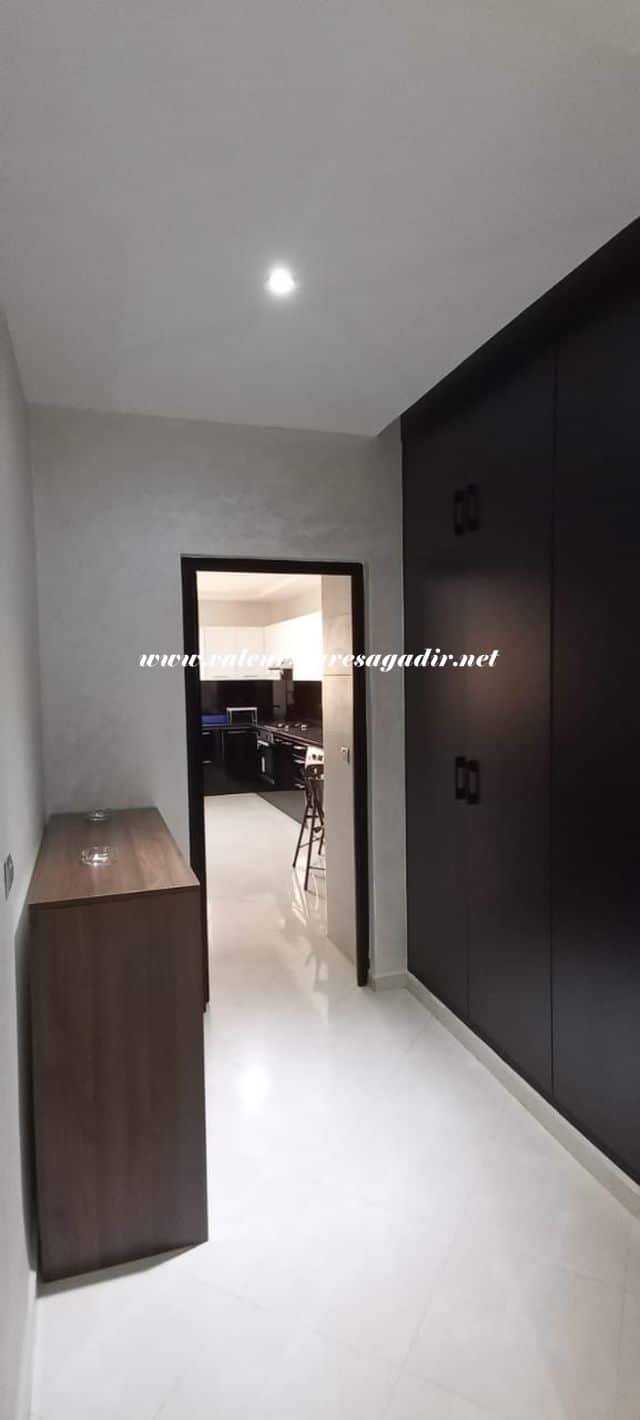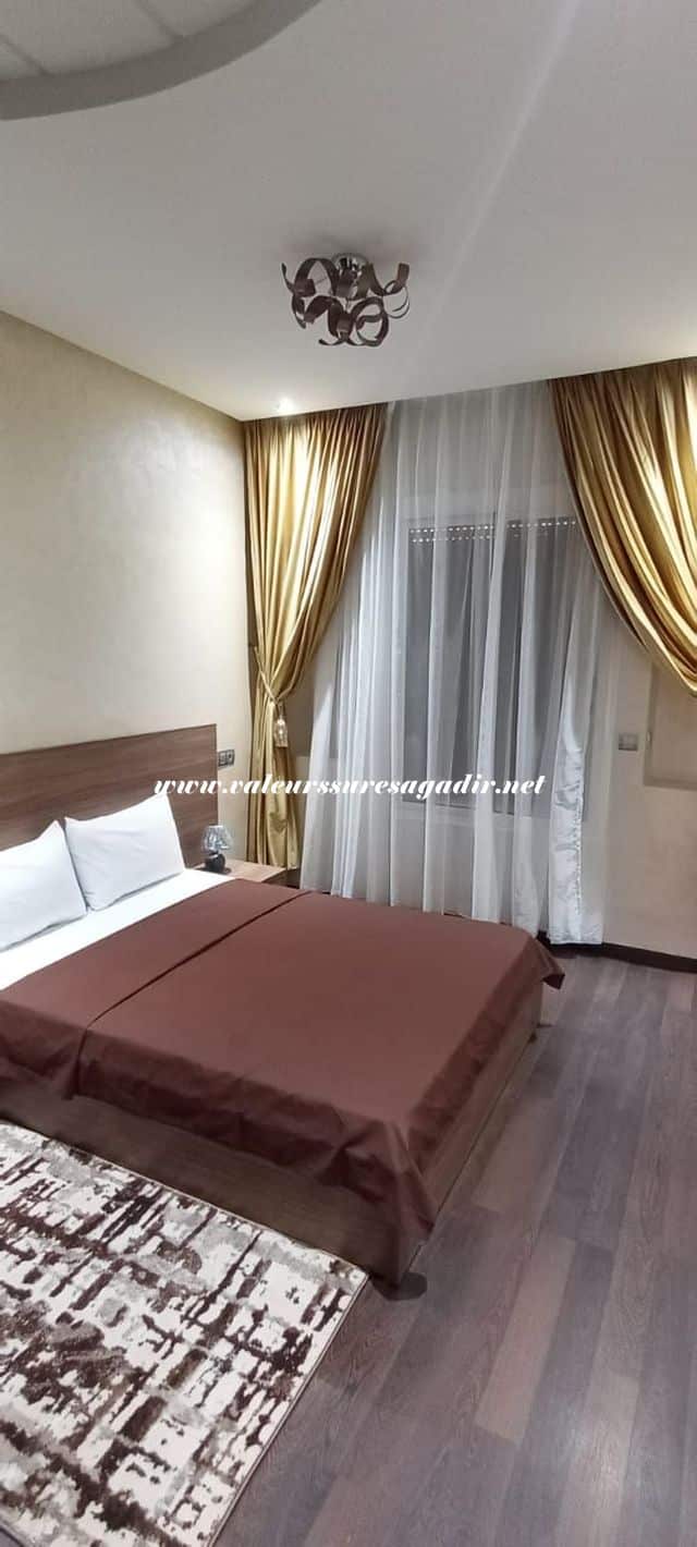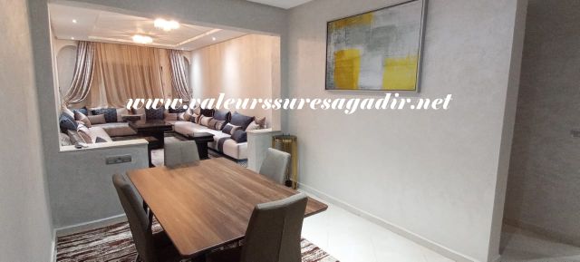 Bienvenue dans cet appartement situé à l’Avenue des Far au 3ème étage d’une résidence avec ascenseur pour profiter pleinement de votre séjour à Agadir. Il comprend une entrée, sanitaire : lavabo, wc, salon marocain avec salle à manger, couloir avec penderie, cuisine équipée moderne avec électro ménager, salle d’eau : douche, lavabo, wc, 3 chambres avec placards.