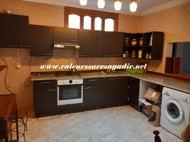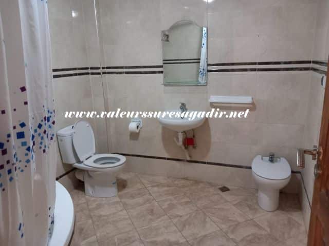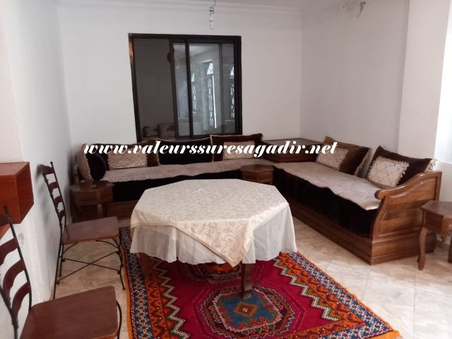 Appartement meublé, situé à Sonaba, d’une surface de 100m². Il se situe au sous-sol d’une villa, il se compose d’un sous-sol : sas d’entrée, salon marocain, cuisine ouverte moderne, salon-salle à manger porte fenêtre sur terrasse, couloir, 2 chambres dont une avec placard et salle de bain : baignoire, lavabo, wc.
