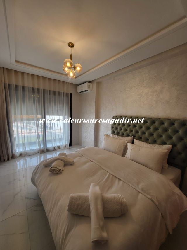 logement disponible pour familles et couples mariés.Il se compose d’un un salon ouvert sur une cuisine équipée, deux chambres avec lit double placard et climatisation, une salle de bain.