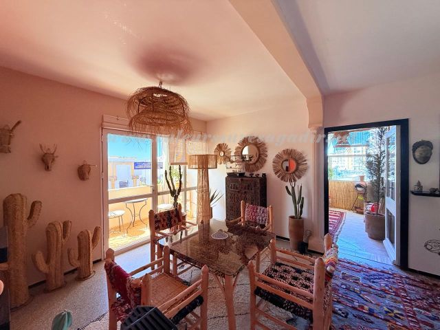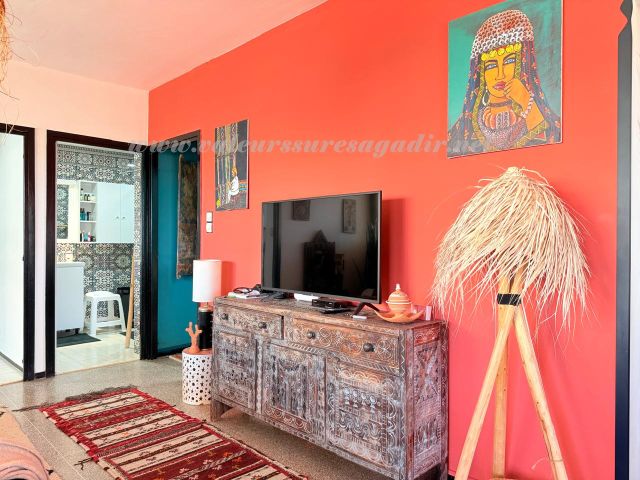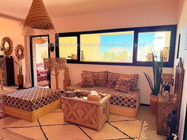 Profitez d’un séjour inoubliable au cœur d’Agadir dans cet appartement meublé au style typique et artisanal, alliant charme marocain et confort moderne.